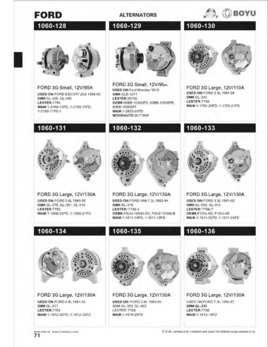 FORD 3G Small, 12V/95A FORD 3G Large, 12V/110A FORD 3G Large, 12V/130A FORD 3G Large, 12V/130A